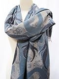 Striking "Midnight Garden" merino shawl from our line of gorgeous wools. The ultimate accessory, adding both warmth and elegance in a gorgeous stylized foilage woven design. Merino wool is considered one of the highest qualities of wool. Luxuriously soft, yet hard wearing. Generous sizing makes it ideal as both a wearable wrap or as a decorative throw. Approx. 80" L x 40" W. 2" fringe. 100% Wool. Dry Clean. Imported..../ "Midnight Garden" Merino Wool Shawl Scarf Stole Wrap Throw Navy & Light Blue / Special Occasion