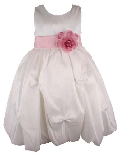 Simple, trendy and elegant. This dress is perfect for the upcoming wedding and special occasion season. This ivory dress is accented with a dusty rose sash that is adorned with a detachable flower. The sash ties in the back of the dress and is detachable for easy cleaning and versatility. The skirt of the dress in the front and back of the dres is a pick up style with lots of adorable pick ups. The skirt finishes in a bubble style skirt and a zippered closing int he back of the dress..../ Girls Special Occasion Dusty Rose Ivory Flower Girl Dress-18 Months / Special Occasion