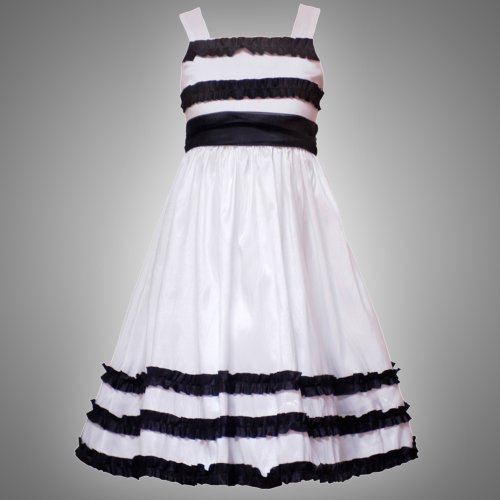 CHECK LOWEST PRICES Size-8 RRE-4213S WHITE BLACK RUFFLE TRIM TAFFETA Special Occasion Wedding Flower Girl Graduation Pageant Party Dress,S442131 Rare Editions 7-16